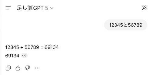 今回は、この機能を少しだけ試してみたかったので、足し算をするGPTsを作ってみました。