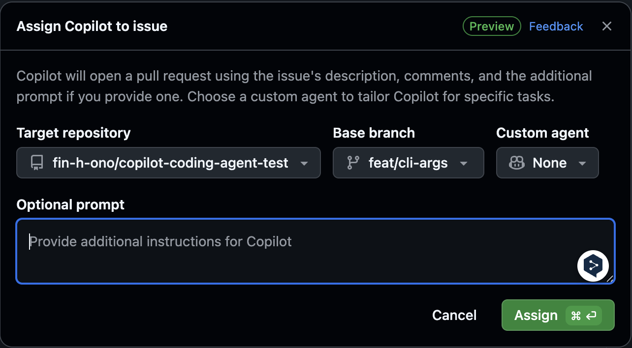 そして、Copilotをアサインするとこのようなモーダルが表示されます。