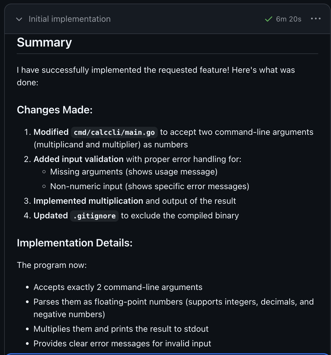 Issueの内容がとてもシンプルだったため、初回の実行でおおよそ思った通りのコードが生成されたのですが、追加する変数名から後続の処理まで予想して、指示していない内容までコード化されていたのは想定外でした。